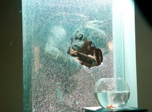 The Doctor explains that Joe just died without a true cause of death. Talking about where they are and what’s going on, it is revealed that Rita is a Muslim when she speculates that they are in Jahannam (the Islamic perception of hell). The Doctor assures them that they are not; Amy then gives the Doctor some papers she picked up earlier: pages from Lucy’s journal. The Doctor reads them aloud. After he says “praise him,” Howie repeats it, almost against his will. While everyone is panicked, the Doctor restores calm by using the sonic screwdriver. Gibbis tries to convince them to hand over Howie over to the monster, but the Doctor puts him in his place. Using Howie as a conduit, the Doctor lets him tell him how they are all too distracted, so he’s focusing only on Howie for the moment. The Doctor then tells them all that the monster is feeding on is fear, so whatever the do, do not be afraid. Amy: “Then what are we going to do?” Doctor: “We’re going to catch ourselves a monster…”