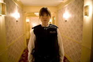 We open with an Earth woman in a British police uniform, Lucy Hayward, wandering the interior hallways of a very clichéd, Eighties-style hotel, looking through a few of the rooms as she narrates. Inside each room is a person, creature, or thing that appears like it’s directly pulled from the catalogue of collected phobias: clowns, photographers, gorillas, etc. Writing in a journal, Lucy describes how “you don’t know what’s going to be in your room until you see it.” Intercut among a number of harsh jump cuts is the eye of some kind of strange monster…one whose breathing seems almost labored. Writing in her journal, Lucy describes being “so happy” now. Her last words, written over and over, are “praise him.” We hear the monster approaching, and even get it’s point of view, as it advances on the rapturous Lucy, and then we cue the credits.