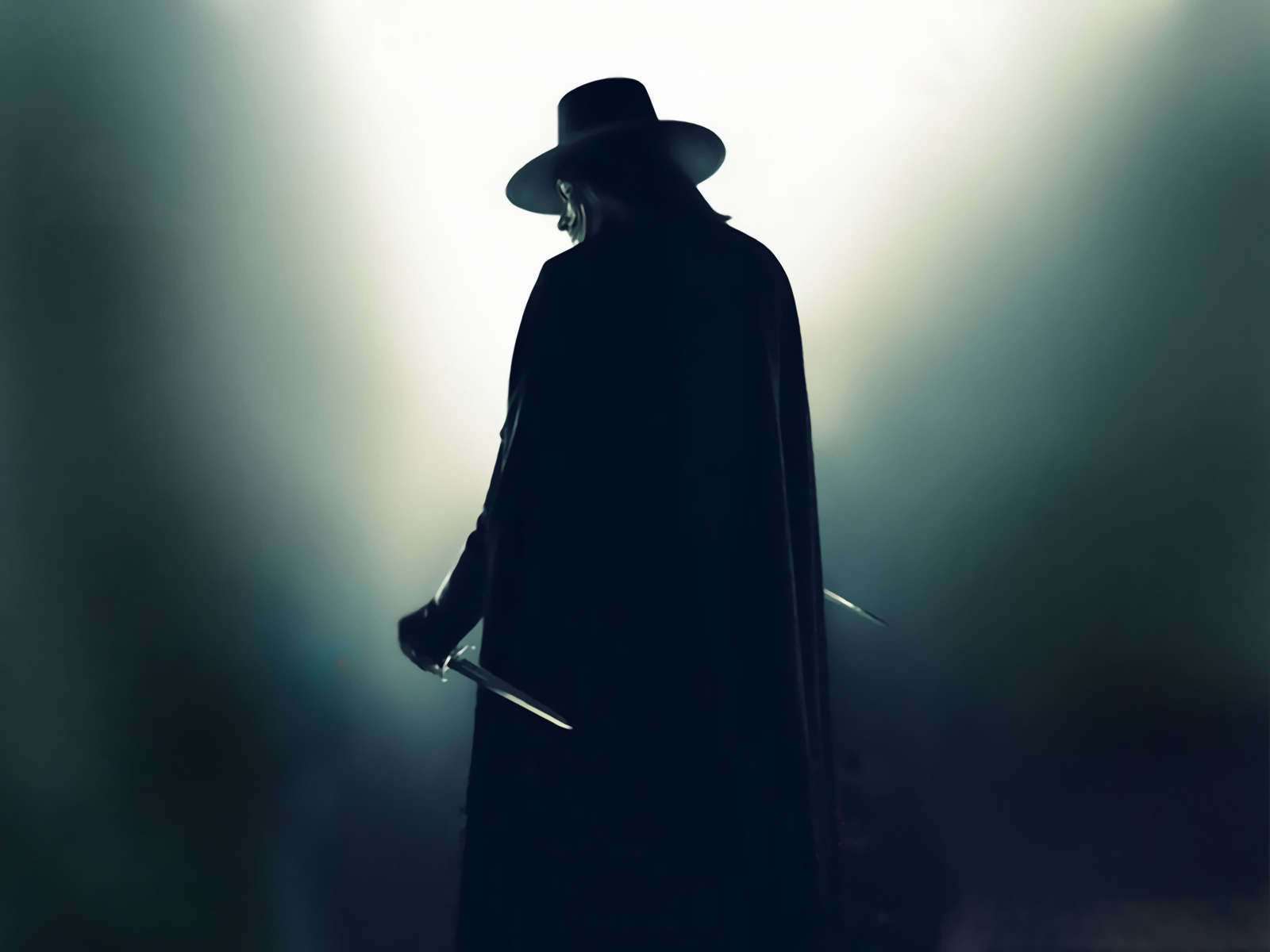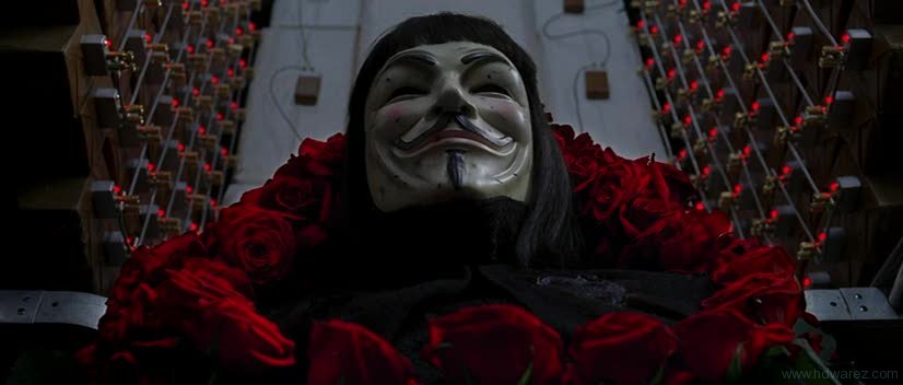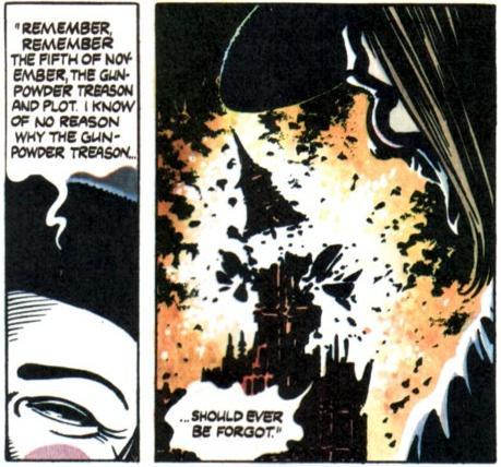 Between both works, however, the character of V is quite consistent. In each, his real face, always hidden under his Fawkesian mask, remains a complete mystery to the audience and the majority of the other characters, as does his name and personal history. Unlike most comic book heroes, V’s real identity is largely irrelevant to whom he is as a character, as he professes to be the living embodiment of a symbol and an idea more than an actual person. In an eloquent, defiant proclamation repeated in each work just before his death, V states “there is no flesh and blood behind this mask, only an idea…and ideas are bulletproof.”