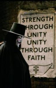 It has only been in recent weeks, through the shameful violence inflicted upon it by members of law enforcement in places like Oakland, Portland, Berkeley, UC Davis, and New York City that the movement has appeared appropriately galvanized and refocused again, forced out of their modern era “Hipster Hoovervilles” and back onto the streets and engaging in active protest. According to an article in The New York Times, the protesters have evoked the mantra “you can’t evict an idea;” reminiscent, certainly, of V’s “ideas are bulletproof” concept. Still, their portrayal in the media remains a problematic one, as does their lack of a unified voice. In many respects, I almost wish they had someone like a V – not the V that represents ruthless and violent vigilantism, who commits acts of destruction and terrorism, but the unifying individual who can capably state their singular agenda they hold as true to their cause. By avoiding this out of an obtuse desire to represent “the majority” (which in turn, means only themselves), OWS has been getting mired in their hand gestures and divergent agendas. I have made, before now, comparisons to the American Revolution, and this has been by design; the ideological underpinnings for the War for Independence, now recognized as the bedrock for our nation, were crafted by an assortment of the greatest exemplars of the fledgling nation. In contrast, Occupy Wall Street has attempted to satisfy their need to remain on message with what feels like a cacophony of confused ideas, some of which have been very well articulated by some individuals representing the movement, and less so by others. There are obviously great ideas there that are shared by many of the Occupiers, such as the reinstatement of the Glass-Steagal Act, but the fact is, they’re not being articulated. What the movement needs is something akin to V’s vendetta; a formulated method of clarifying and enacting its agenda, and one that also simultaneously undermines the extreme national condition that they oppose.