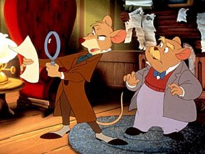 For those of you not familiar with either of these pieces of Holmesian Cinema: Young Sherlock Holmes was an attempt to tell Holmes and Watson’s early days a la Indiana Jones with a heavy dose of early Pixar FX. Though I found it endlessly rewatchable as an eight-year old, by today’s standards, it does NOT age well. The Great Mouse Detective, meanwhile, was a Walt Disney animated movie based loosely on E.B. White’s Basil of Baker Street, Sherlock’s rodent counterpart, and it’s decent fun, if a bit childish.