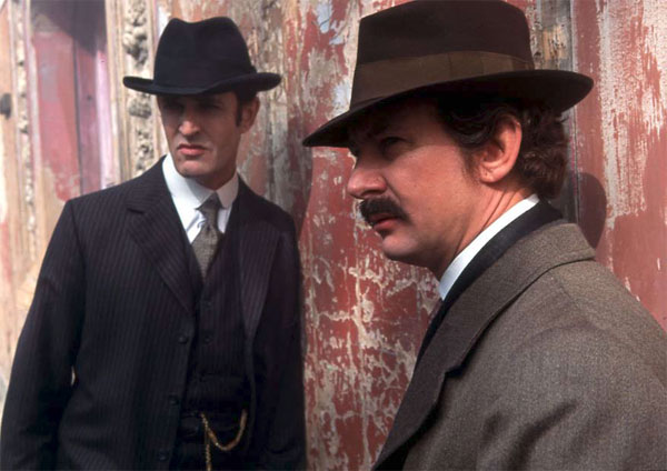 Based on the pastiche novel of the same name by Nicholas Meyer (who also adapted the screenplay), The Seven-Per-Cent Solution, which like The Private Life of Sherlock Holmes was also portrayed as a lost Watson manuscript, this rather offbeat adventure portrays a Holmes story specifically designed to run contrary to cannon. Driven to paranoid delusions by his ever-increasing cocaine use, Holmes (Nicol Williamson) has begun stalking a harmless mathematics professor named Moriarty (Laurence Olivier), irrationally accusing him of being “the Napoleon of Crime.” Concerned about his friend’s health and sanity, Watson (Robert Duvall – no, really, Robert Duvall) creates an elaborate ruse to lure Holmes to Vienna so he can receive therapy from none other than the great Sigmund Freud (Alan Arkin). Naturally, Holmes, Watson, and Freud get lured into an elaborate mystery plot, which eventually forces Holmes to confront a severe childhood trauma. A certainly unusual and atypical Holmes story, yet a very entertaining and compelling one, that fleshed out the background of one of the icons of literature, treating him ultimately more as a quirky, fascinating character than a popular archetype.