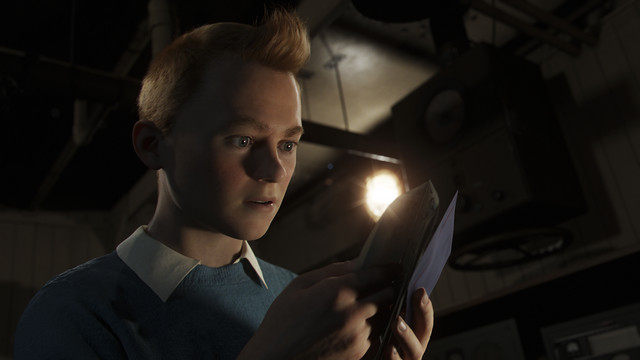 Even trying to ignore the limitations of the animation style, the film that remains just doesn’t really work. It’s surprising, since both Spielberg and Jackson are so typically adroit at presenting thrilling adventure stories, and the writers, including Stephen Moffat, Joe Cornish, and Edgar Wright, are no slouches with action plotting and humorous dialogue, but there’s very little that’s compelling here once it sstory gets moving, which it does almost instantaneously. What actually kind of shocked and frustrated me was that the filmmakers really did nothing to compensate for my lack of knowledge about Tintin, if indeed there indeed is anything to really know. The excellent opening credit sequence gives us a fun little walkthrough of a prototypical Tintin adventure story, but once the film gets rolling we’re either expected to know everything about this boy reporter, or just accept the fact he’s the hero and go along for the ride. And that’s a huge problem, because Tintin, as a character, just has nothing going on.
