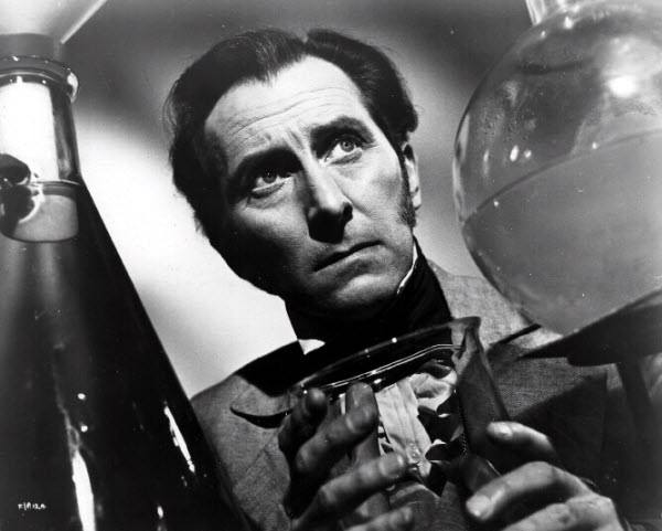 “The Man as the Monster.” Peter Cushing, who played Dr. Frankenstein in all but one of the Hammer series, played the mad scientist as ruthless sociopath with a severe God complex.