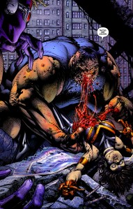 In many respects, Ultimatum reads very much like the comic book equivalent of a snuff film.  Dozens of heroes and villains are killed during the course of the story, and in ways that appear horrifically brutal.  Dismemberment, incineration, decapitation, drowning, and worse are continuously depicted as happening to characters that have, for years, engendered an emotional attachment to the reader, and some of the most famous characters in Marvel’s history are not excluded from the death toll (including those with their own movie franchises).   Even New York City becomes struck down by a tsunami, killing hundreds of thousands of people, and that’s only in the first few pages!  Nothing seems beyond the pale here, including suicide bombers and cannibalism.